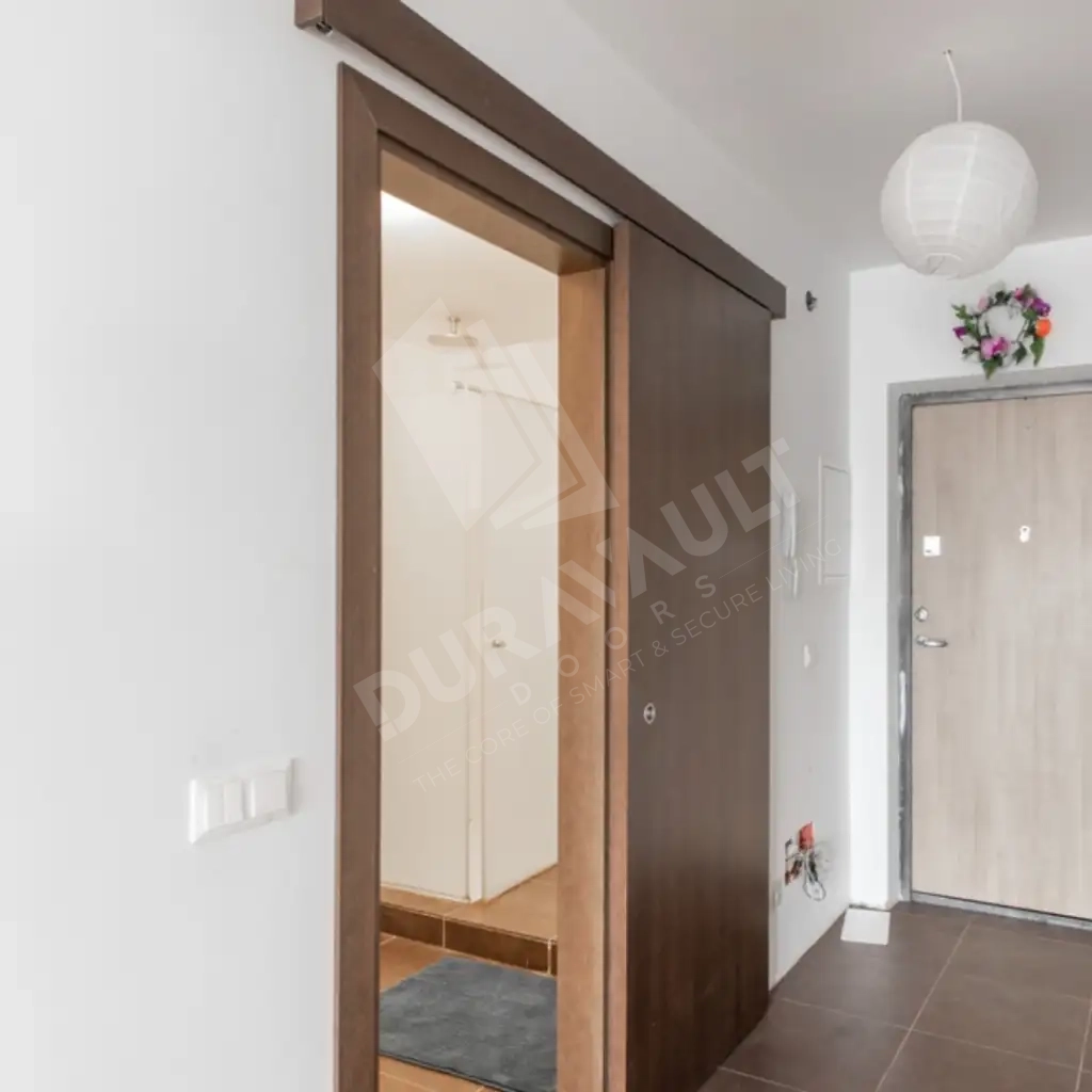 Duravault’s pocket doors are designed to maximise usable space while adding a sleek and modern touch to interiors. Unlike traditional hinged doors, pocket doors slide neatly into a concealed cavity within the wall, making them an ideal solution for compact areas and contemporary designs.